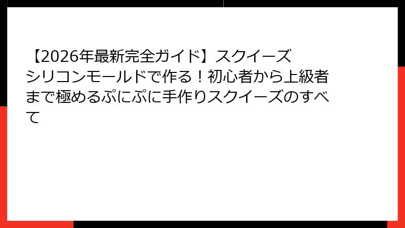 【2026年最新完全ガイド】スクイーズ シリコンモールドで作る!初心者から上級者まで極めるぷにぷに手作りスクイーズのすべて