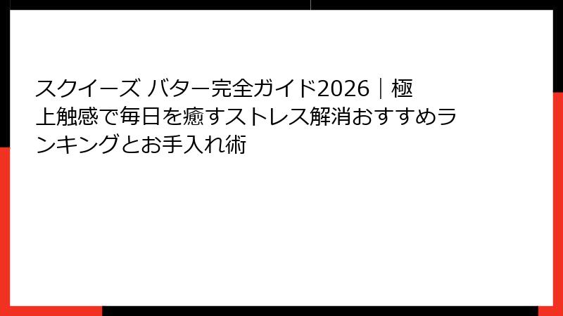 スクイーズ バター完全ガイド2026|極上触感で毎日を癒すストレス解消おすすめランキングとお手入れ術