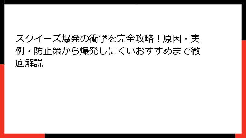 スクイーズ爆発の衝撃から始まり、科学的な解明、実録事例、完全防止策、そして爆発しにくいおすすめと未来のライフスタイルまで、一貫して「安心して楽しむ」ことをテーマにお伝えしてきました。