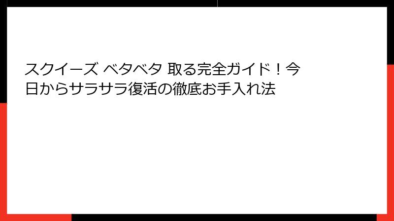 スクイーズ ベタベタ 取る完全ガイド!今日からサラサラ復活の徹底お手入れ法