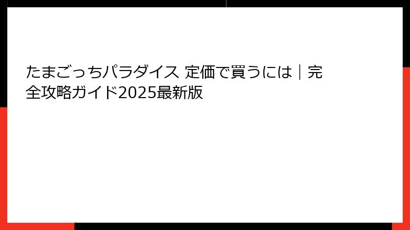 たまごっちパラダイス 定価で買うには|完全攻略ガイド2025最新版
