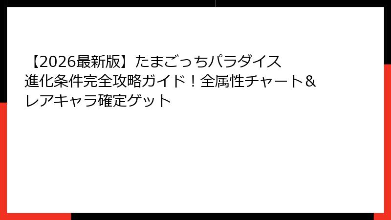 - 【2026最新版】たまごっちパラダイス進化条件完全攻略!全属性チャートでレアキャラも確定ゲット