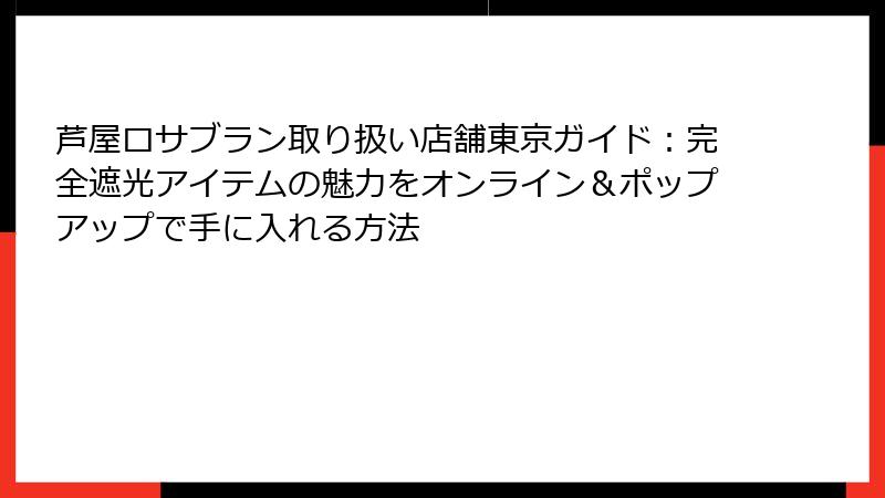 このような環境下で、芦屋ロサブランの完全遮光アイテムは、東京の女性にとって理想的な選択肢。