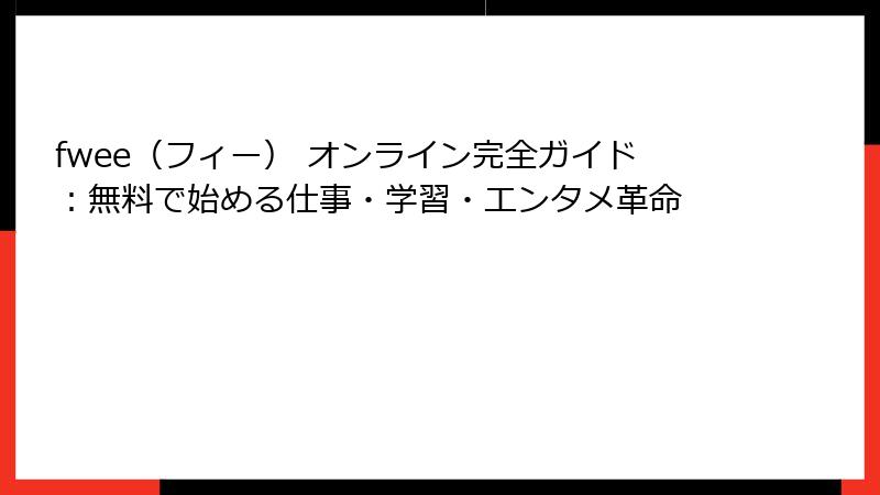 このブログ記事では、fwee(フィー) オンラインがどのようにあなたの日常を変えるのか、その魅力と基本概要を徹底解説します。