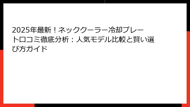 - 厳選!2025年おすすめ冷却プレートネッククーラー5選|口コミで検証した本当の性能