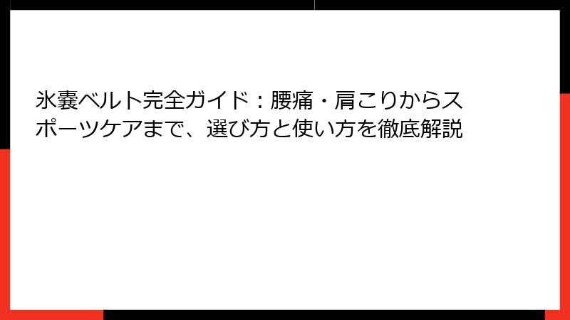 氷嚢ベルトは、これらのニーズにぴったり応えるアイテムとして、幅広い層から支持を集めています。