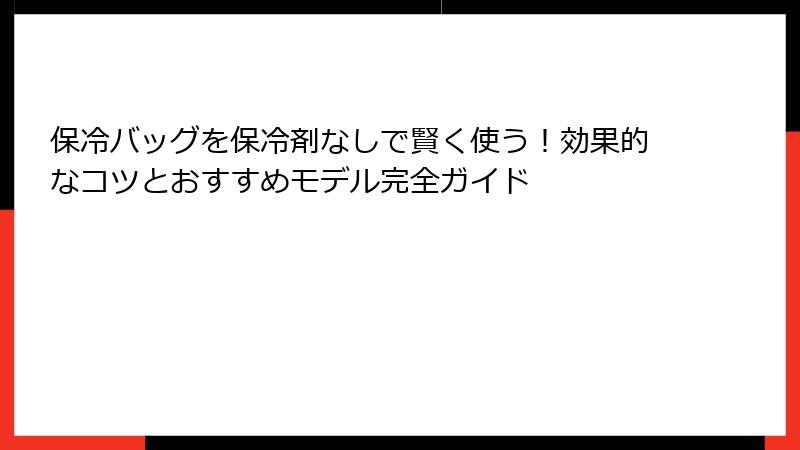 - バッグの事前冷却:保冷バッグ自体を冷蔵庫で冷やしておくと、初期の保冷効果がアップ。