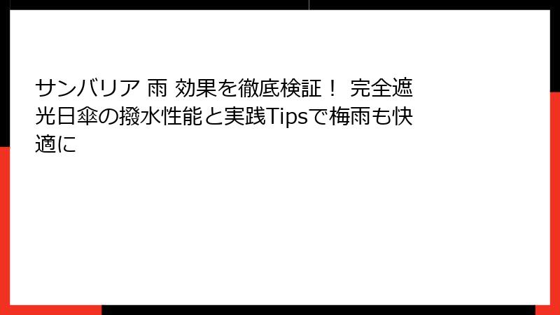 ユーザー体験から見る「サンバリア 雨 効果」の価値と、2025年の梅雨を快適に過ごすためのビジョンを描きます。
