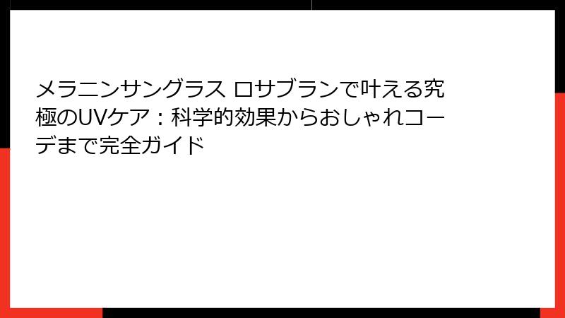 ロサブランのメラニンサングラスを自信を持って選べるよう、具体的な情報を提供します。