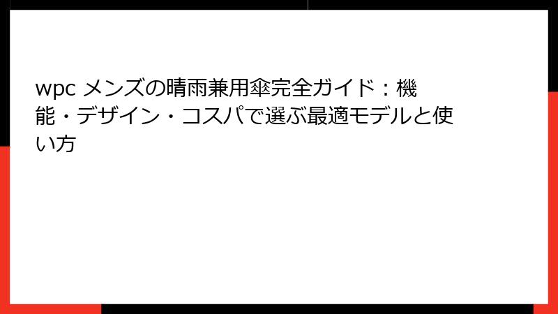 「wpc メンズ」の晴雨兼用傘は、機能性、デザイン、環境配慮の三拍子揃ったアイテム。
