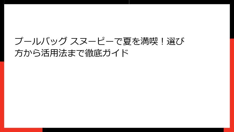この記事では、プールバッグ スヌーピーの魅力を徹底的に掘り下げ、選び方からおすすめ商品、活用シーンまで詳細に解説。