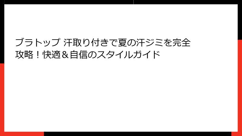 この記事では、ブラトップ 汗取り付きの基本的な魅力から、選び方のポイント、おすすめ商品、活用方法までを徹底解説。