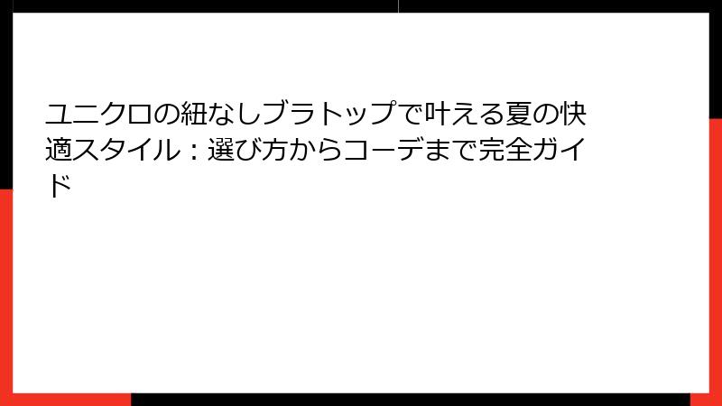 この記事では、ユニクロの紐なしブラトップの魅力から選び方、実際の着こなし術まで、詳細にわたってご紹介します。