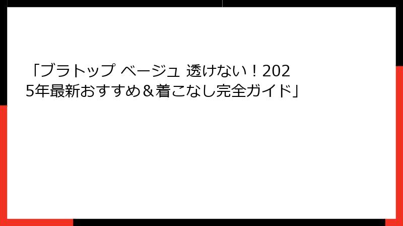 この記事では、透けないベージュブラトップの魅力から選び方、おすすめ商品、着こなしのコツまで、徹底的に解説します。