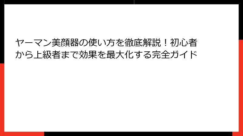 - ヤーマン美顔器の効果を最大化!プロが教えるコツと注意点