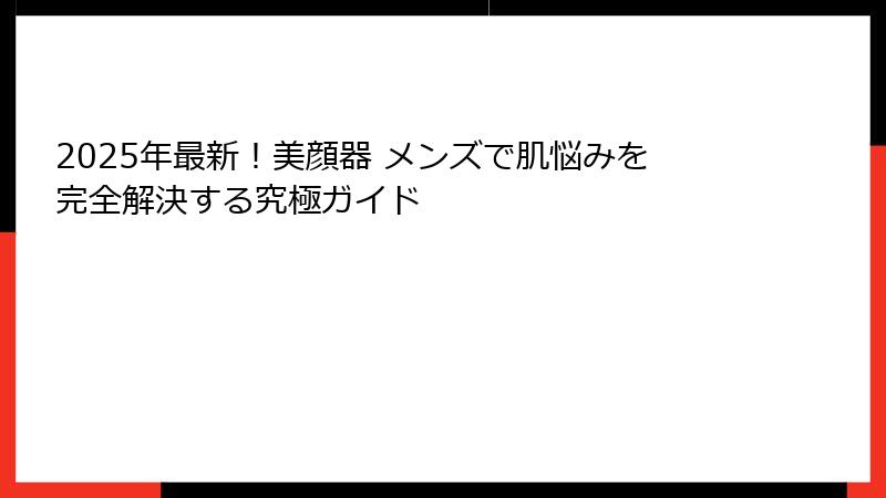 この記事では、メンズ美顔器がなぜ必要なのか、男性特有の肌悩みとその解決策、そして2025年の最新トレンドを徹底解説します。