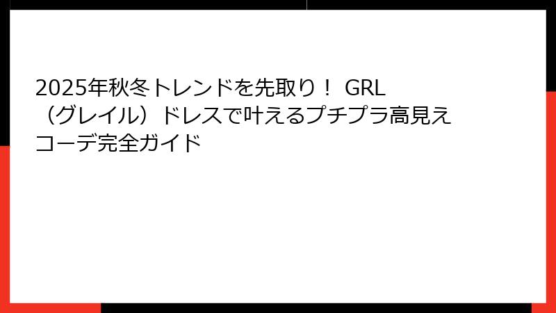 2025年秋冬トレンドを先取り! GRL(グレイル)ドレスで叶えるプチプラ高見えコーデ完全ガイド