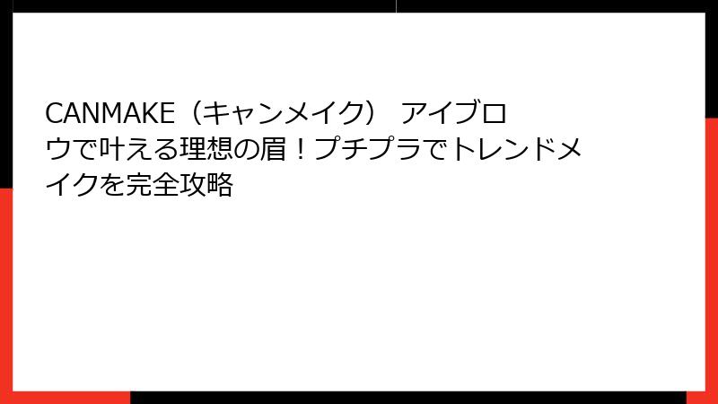 1. キャンメイクのアイブロウが選ばれる理由:プチプラで叶えるトレンド眉