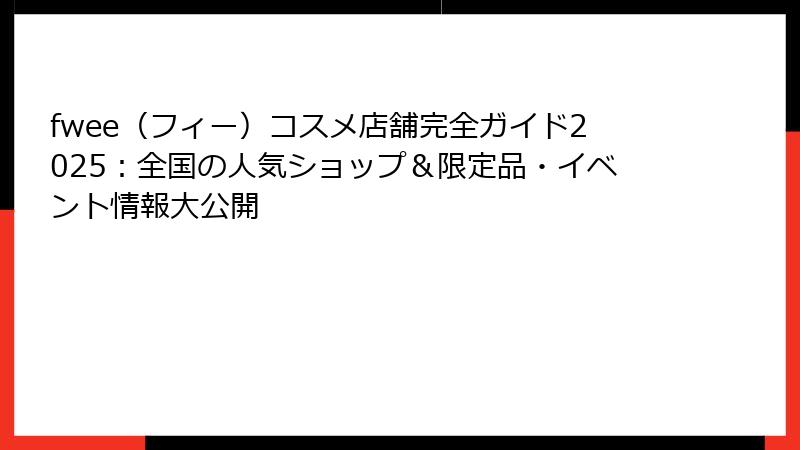 fwee(フィー)コスメ店舗完全ガイド2025:全国の人気ショップ&限定品・イベント情報大公開