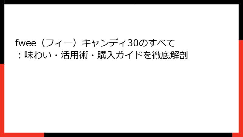 この記事は、fwee(フィー)キャンディ30について知りたいすべての人に、具体的な価値を提供します。