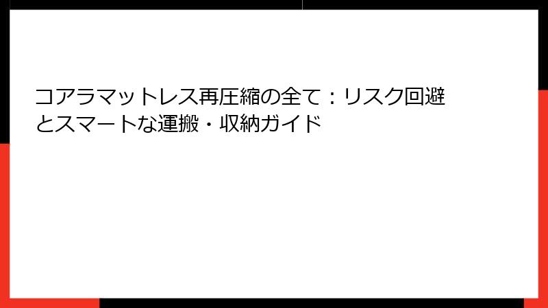 この記事では、コアラマットレスの再圧縮にまつわる疑問を徹底解剖し、引っ越しや収納の際に失敗しないための知識と実践的な解決策を詳細に解説します。