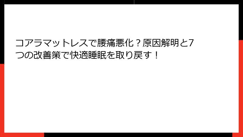 この記事では、私自身のリアルな体験談を基に、「コアラマットレス 腰痛悪化」という悩みを抱えるあなたに向けて、その原因と解決策を徹底的に検証します。