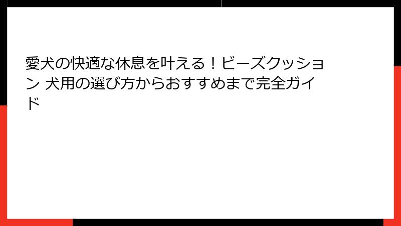 内容はビーズクッション 犬用の要点をまとめ、活用方法、メンテナンス、DIYカスタマイズ、行動喚起を詳細に解説。