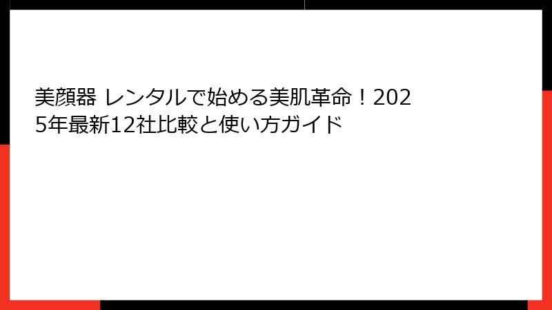 美顔器 レンタルで始める美肌革命!2025年最新12社比較と使い方ガイド