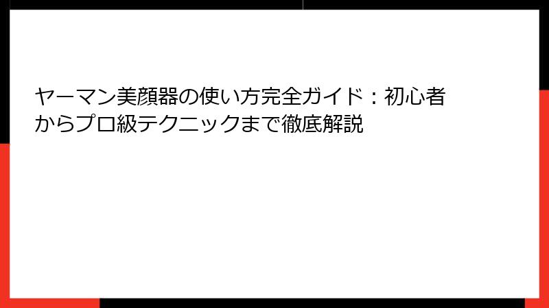 この記事では、初心者が陥りがちなミスを防ぎながら、ヤーマン美顔器の効果を最大限に引き出す方法を具体的に解説します。