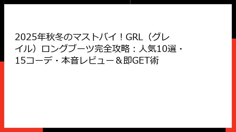 - GRL(グレイル)ロングブーツのラインナップ徹底解剖:人気モデル10選をピックアップ