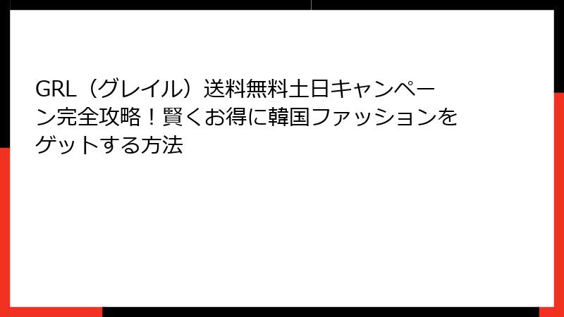 そこで朗報! GRLでは土日限定で送料無料キャンペーンが開催されることがあり、これを活用すれば賢くお得にショッピングが楽しめます。