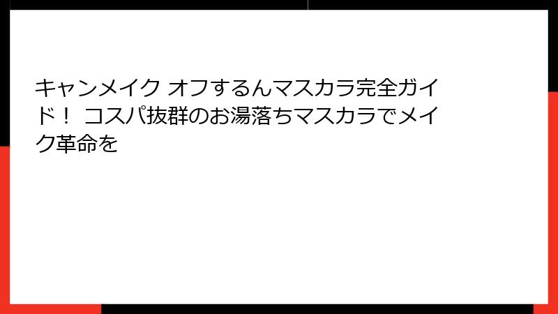 毎日のメイク、楽しんでいますか? 朝の忙しい時間にメイクをバッチリ決めて、夜は疲れ果ててメイク落としに時間をかけたくない…そんな現代女性の悩みを一気に解決してくれるのが、CANMAKE(キャンメイク)の「オフするんマスカラ」です。