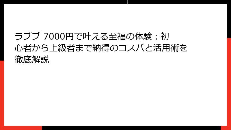 ラブブ 7000円で叶える至福の体験:初心者から上級者まで納得のコスパと活用術を徹底解説