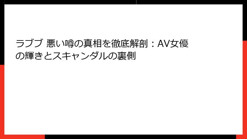 - ラブブの悪い噂がもたらす影響:似たAV女優のスキャンダル事例と、彼女のキャリア復活の鍵