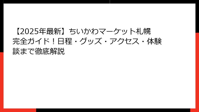 ちいかわマーケット札幌2025の開催概要をいち早くお届け!現時点での公式発表を基に、仮の日程や会場情報を整理しました(※最新情報は随時更新予定)。