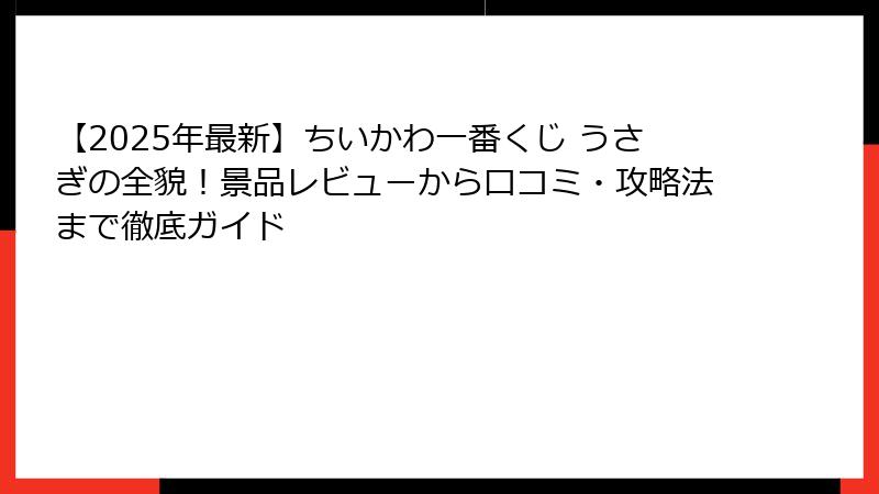 【2025年最新】ちいかわ一番くじ うさぎの全貌!景品レビューから口コミ・攻略法まで徹底ガイド