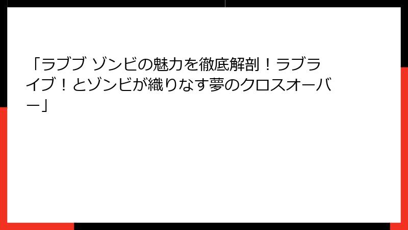 「ラブブ ゾンビの魅力を徹底解剖!ラブライブ!とゾンビが織りなす夢のクロスオーバー」
