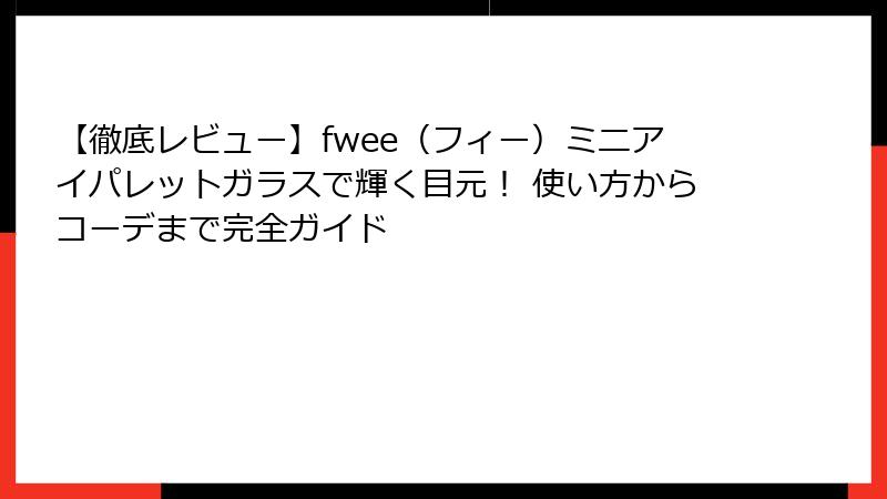 - fwee(フィー)ミニアイパレットガラス、買って後悔なし! あなたへの最終おすすめポイント