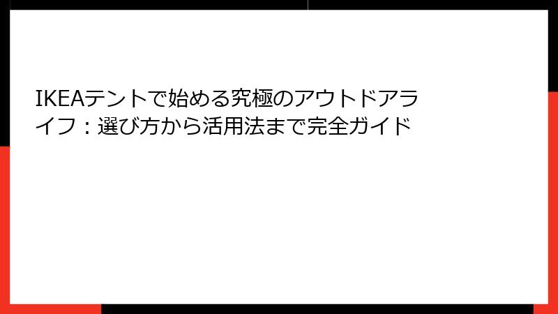 IKEAテントを最大限に活用するためのガイドとして、以下のような情報を提供します。