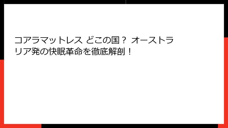 コアラマットレスは、オーストラリア発の「どどこ国」ブランドとして、睡眠の質を向上させ、あなたの生活を変える可能性を秘めています。