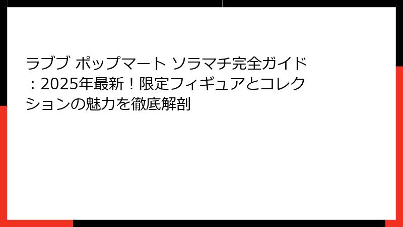 このセクションでは、ラブブの新シリーズ、ソラマチ店の進化、ファンコミュニティの拡大について詳しく探り、コレクターとして一歩先を行くための情報を提供します。