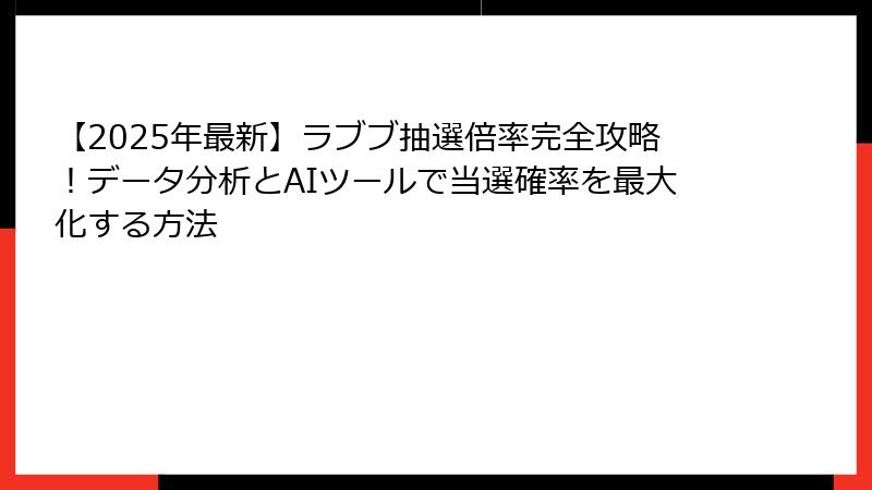 ライブチケットから限定フィギュアまで、イベントごとの倍率推移を表やリストで整理し、ファンが知りたい「どの抽選が狙い目か」を明らかに!さらに、季節やアイテムごとの傾向を分析し、データから見える戦略を解説します。
