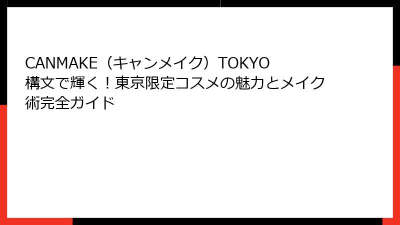 - CANMAKE(キャンメイク)TOKYO構文で東京を体感せよ:まとめと次のおすすめアクション