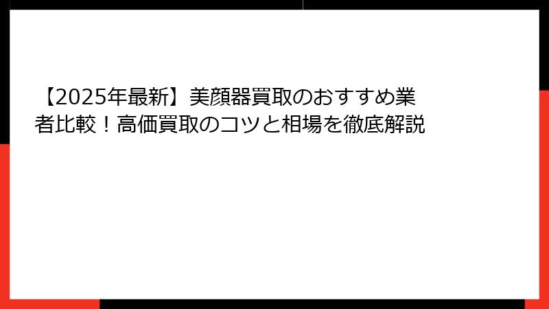 なぜ今が売り時なのか、どんな美顔器が高く売れるのか、信頼できる買取業者の選び方まで、5つの段落にわたって詳細にお届けします。