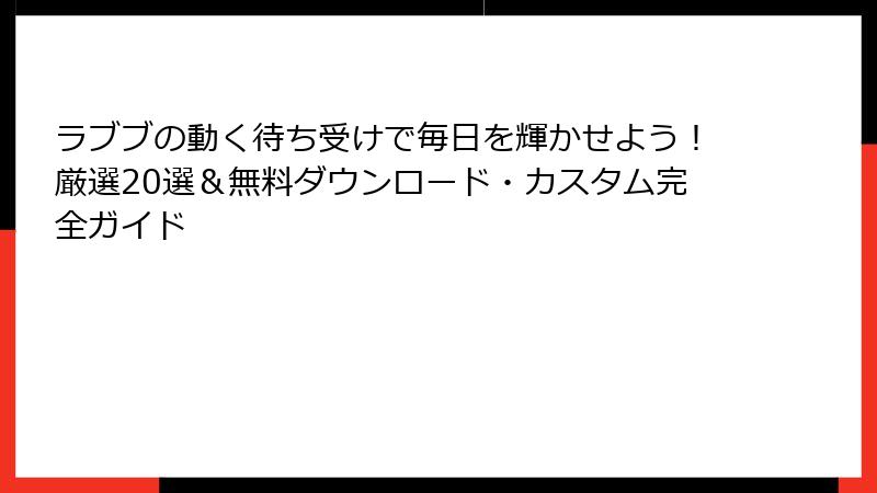 安全なダウンロードとカスタマイズのテクニックも、ラブブの動く待ち受けを楽しむ鍵。