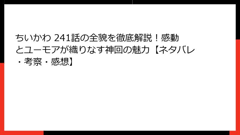 過去のエピソードとのつながりや、ナガノ先生のインタビューを基に、241話がなぜシリーズの未来を予感させるのかを掘り下げます。