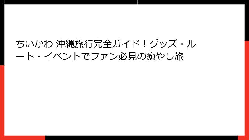 - ちいかわファン必見!沖縄旅行でちいかわの世界を満喫する魅力とは?