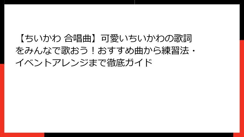 - ちいかわ合唱曲の歌い方完全ガイド!歌詞・楽譜・練習法をゼロからマスター