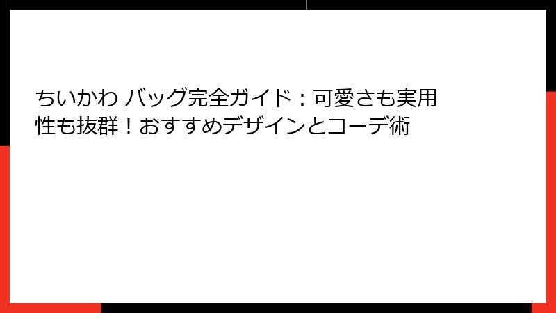 デザインの可愛さから実用性、トレンド感まで、ちいかわ バッグのすべてを網羅し、あなたのお気に入りを見つけるお手伝いをします。