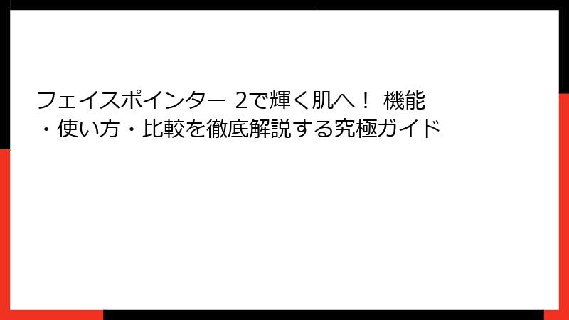 - フェイスポインター 2とは? 美容革命の新次元ツールを徹底解剖